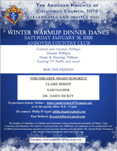 The event is on Saturday, January 31, 2026 at the Andover Country Club.